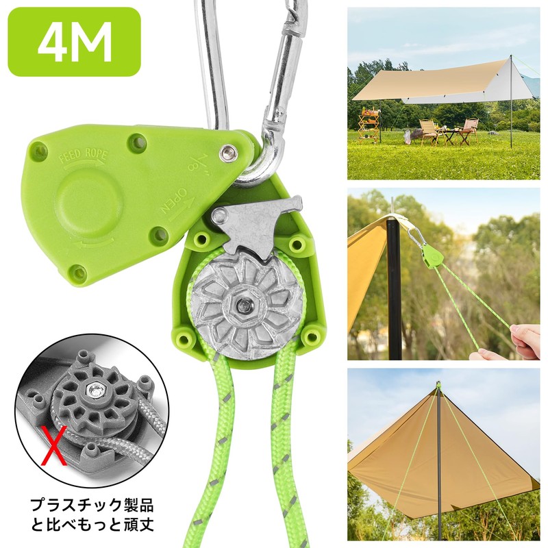 SANLIKE Rope Ratchet, Adjustable, Easy to Use, Ratcheting Rope, Camping & Tarp Cord with Pulley, Adjustable Reflective Rope, Multi-Purpose Camping Rope, Heavy Duty Guy Line for Tent Fixing, Carabiner,
