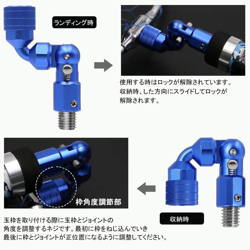 - Improved arm provides better durabilityFold using the lock lever, and use the screw to adjust the angle of the tamo frame, so that the tamo frame and landing net are firmly held together.