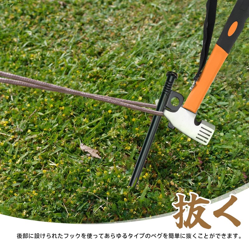 - (Useful Hammer) You can hammer pegs, remove various pegs, and digging soil with this single sticker! It can be used for general construction and not for tent setting up, outdoor activities, disaster prevention, or mountain climbing. It is an essential tool for every household