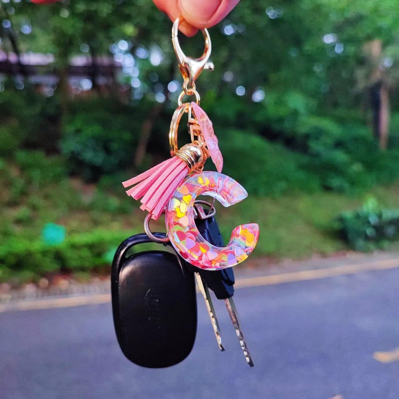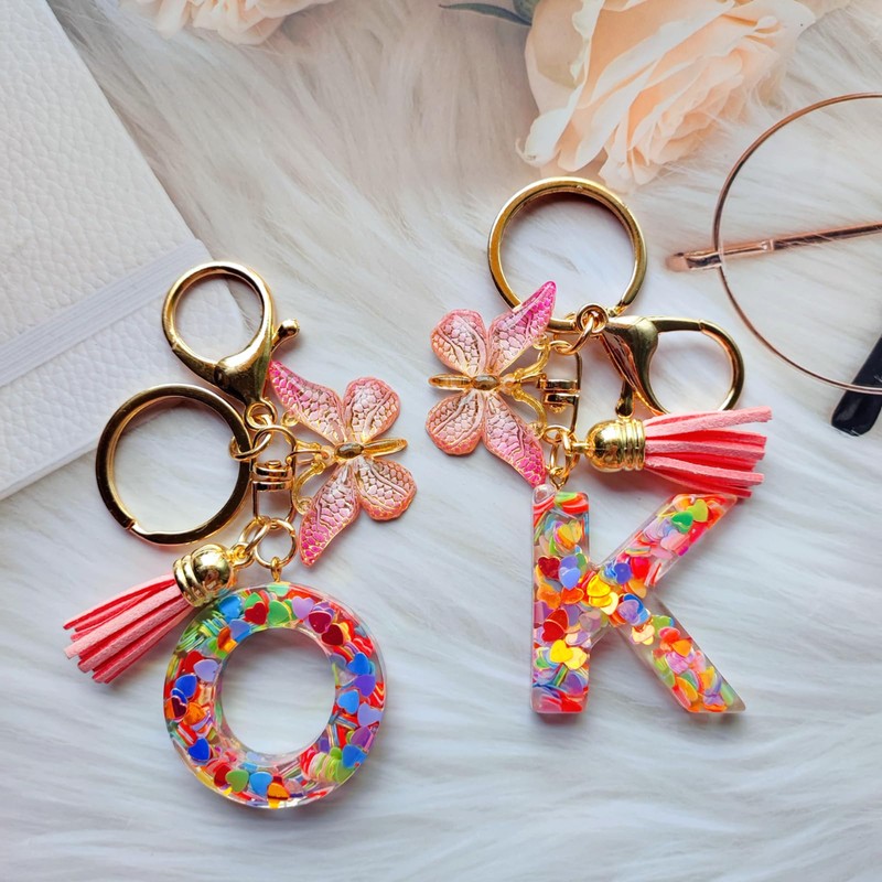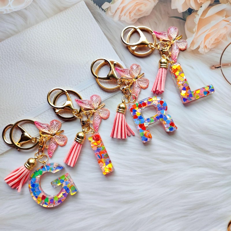 - Initial Letter Keychains: This resin letter keychain is made of high-quality epoxy resin material with high hardness and not easy to break. Come with a resin butterfly and Tassel. Unique Initial letter design, customize your exclusive name keychain.