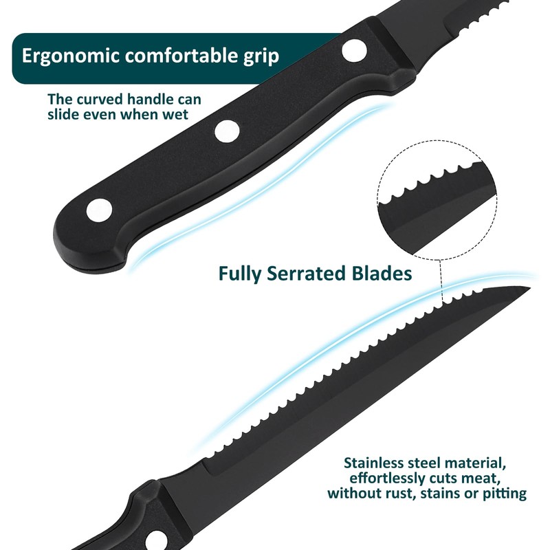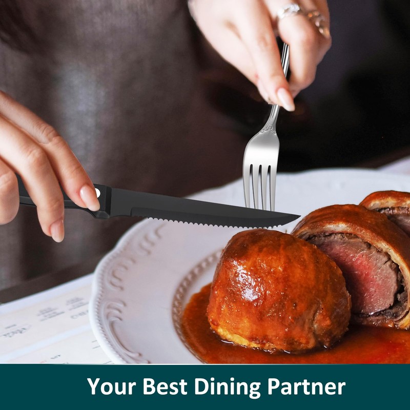 - Rust-Resistant and Spotless - Crafted with rust-resistant stainless steel, our steak cutlery set keeps its blades spotless even after multiple washes. Say goodbye to rust spots and enjoy long-lasting performance. To preserve the quality of the knives, please avoid washing them in the dishwasher.