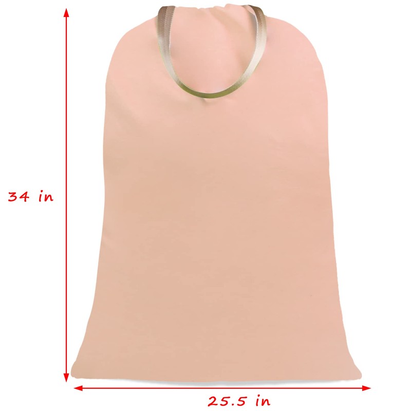Sanlykate Large Canvas Cotton Laundry Bag with Drawstring & Handles, Heavy Duty Durable Dirty Clothes Organizer, Tear Resistant Hamper Liner Storage Bag, Travel Sack, 25.5 x 34inch - Misty Rose