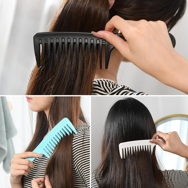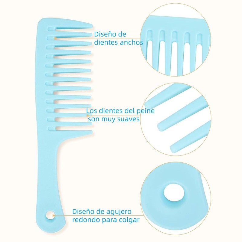 - Diseño de dientes anchos:Nuestros peines de dientes anchos están lo suficientemente espaciados para evitar tirones o enganches, incluso en cabellos muy rizados o gruesos,protege tu cabello de los daños causados por desenredar y peinar.Tanto si tiene el pelo liso como rizado,seco o húmedo,le ofrecerán una buena cuidado del cabello