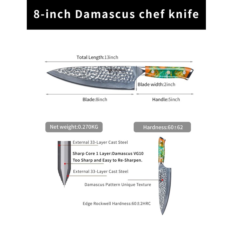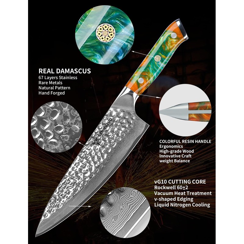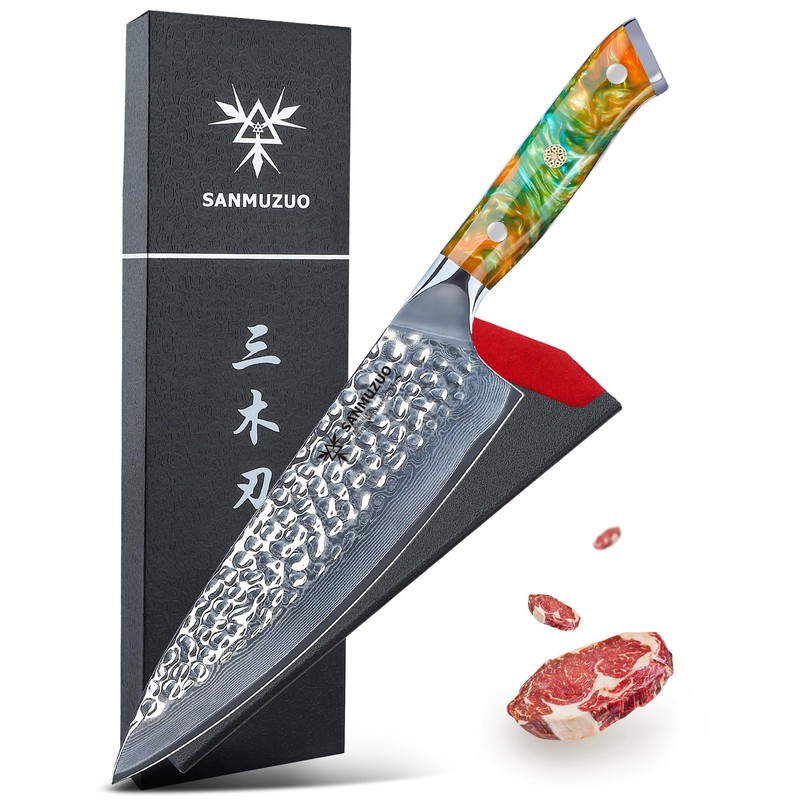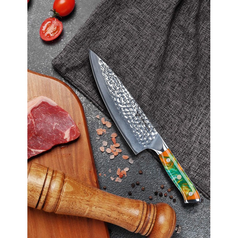 SANMUZUO 8" Chef Knife - Professional Kitchen Knife - Hammered Damascus Steel & Resin Handle - YAO Series