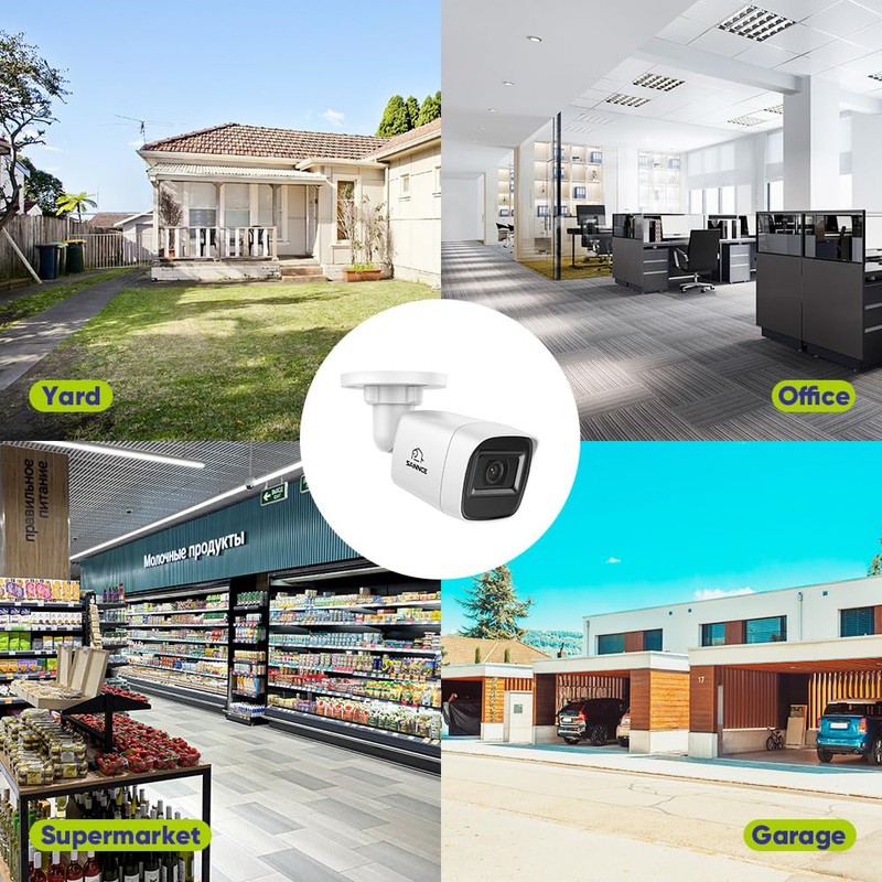 - 【Easy to Fit in Any Scene】 With a flexible and easily adjustable 3-axis stand, the surveillance camera can be fixed at any desired angle to capture a perfect view of the given area, widely used in apartments, offices, garages, shopping malls, etc. 3.6 mm lens is ideal to cover wide-range areas.