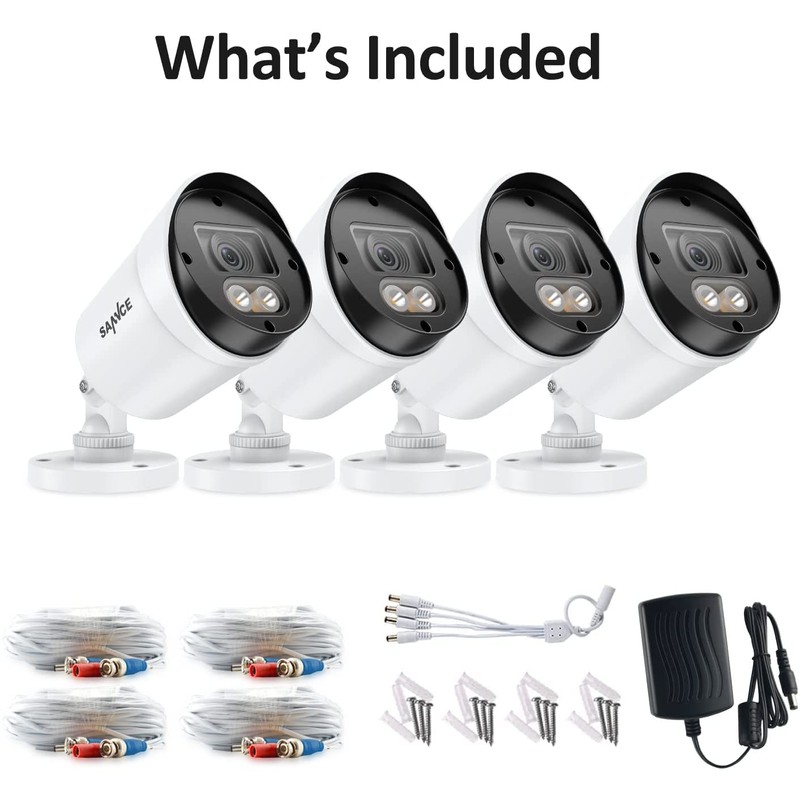 SANNCE Full Color Night Vision Security Camera, 4pcs 1080P TVI Wired CCTV Surveillance Camera for Home, Indoor Outdoor Use, Built-in 3500K Smart Warm Spotlight LED, 4 Cameras with Adapter & Cables