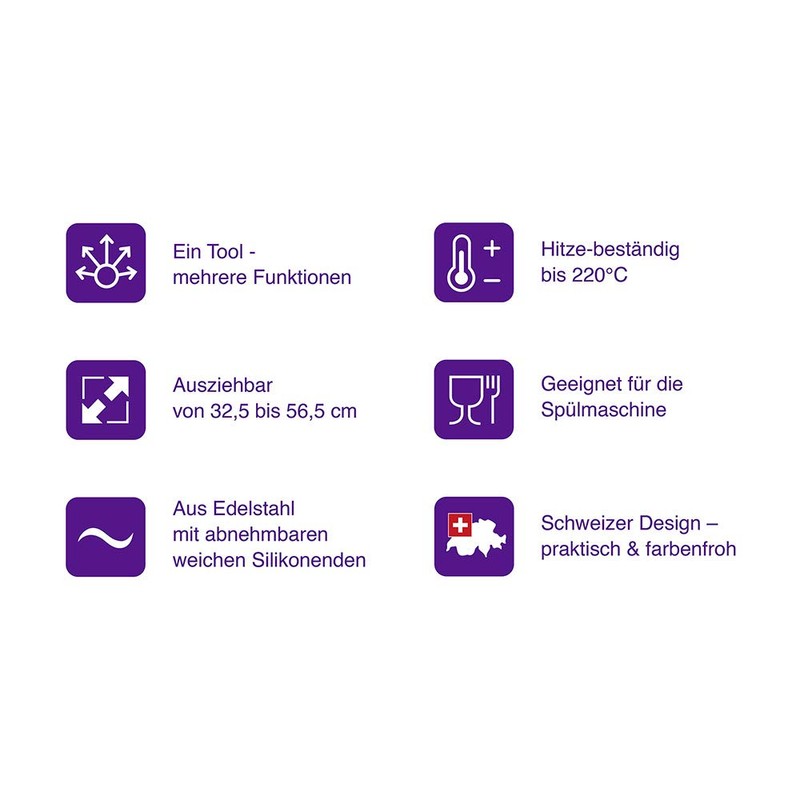 - ✅ Heat resistant up to 220 °C – extendible from 32.5 to 56.5 cm – can hold up to max. 1.5 kg; dishwasher safe.