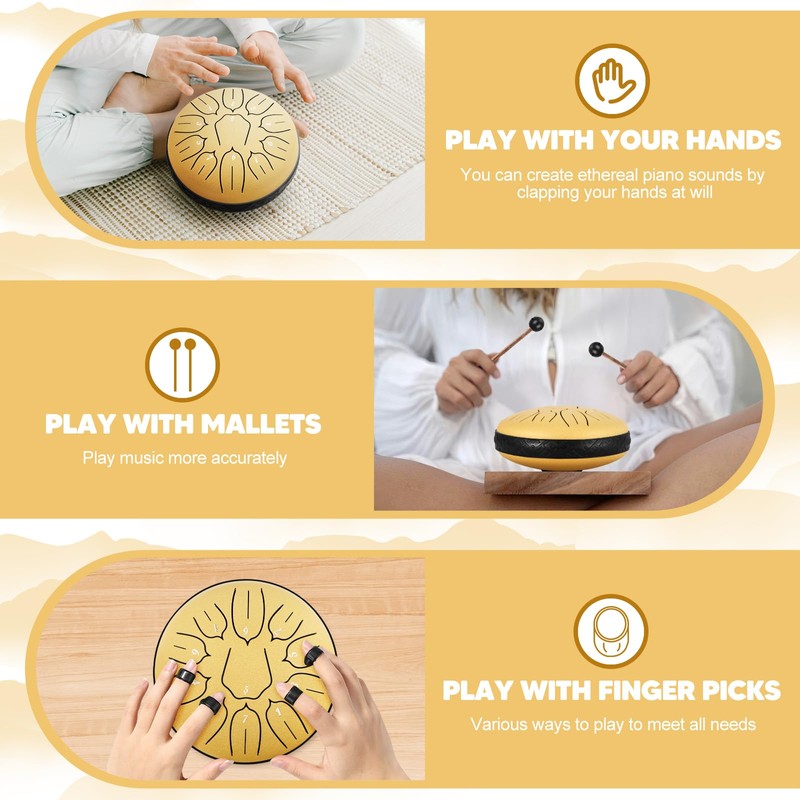Frustrated by traditional drums that are bulky, difficult to carry, or lack melodic richness? Why compromise when you can have an outdoor drum that delivers portability, beautiful sound, and durability? Our 6-inch steel tongue drum is designed to offer an exceptional musical experience, making it an ideal choice for outdoor enthusiasts and musicians alike.
