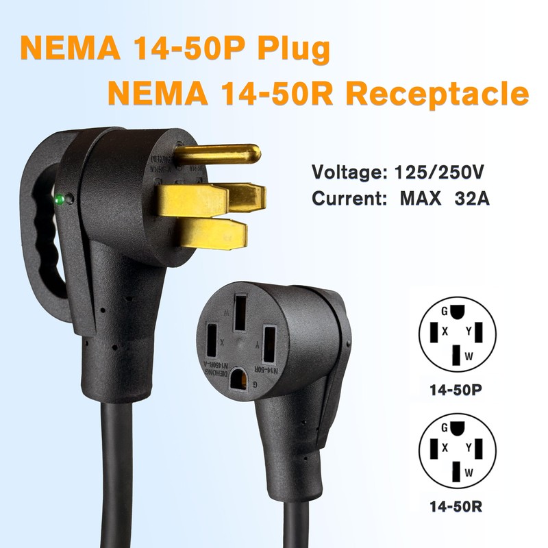 - Easy to Use: Simply plug the 14-50P end into your device and the 14-50R end into the appropriate outlet for a seamless connection. The ergonomic handle allows for easy plugging and unplugging.