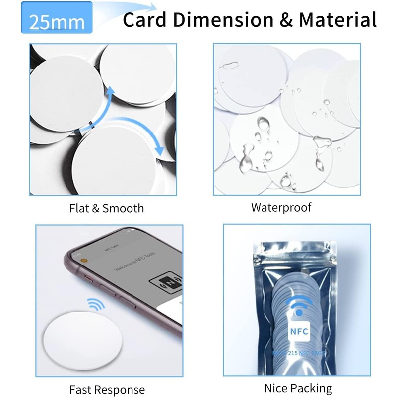 - 【Kleine Größe und Material】 Das Paket enthält 30 Stück weiße NTAG215 Karten, Die Größe der NTAG215-Karte beträgt 25 mm (Typ NXP NTAG215x Chip ). Sie ist klein und tragbar. laminierte weiße PVC-Karten mit glänzendem Finish und wasserdichtem PVC-Material, schützt effektiv den NFC-Chip im Inneren