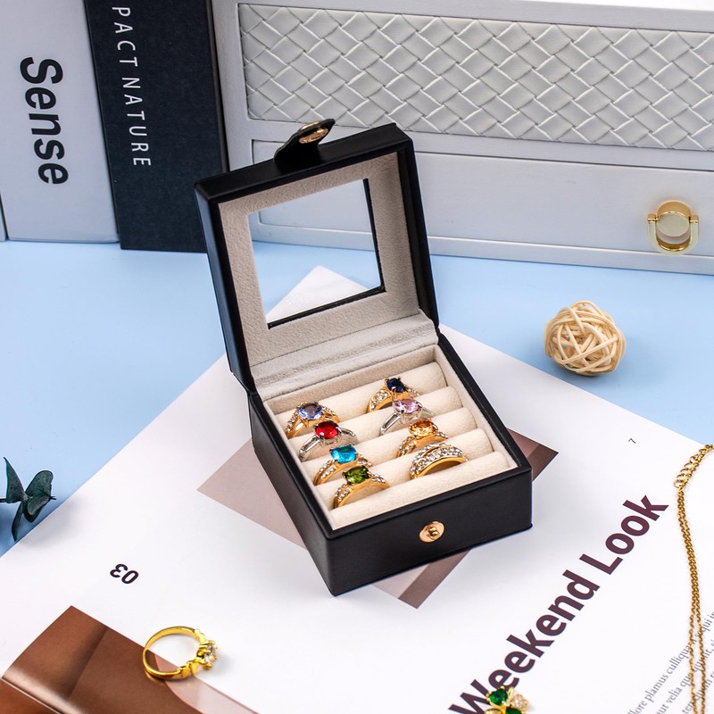 - Glass Top:You can see the earrings, rings, etc. stored in this small jewelry box through the top glass. The glass is embedded in the leather top and will not break easily even if it falls.