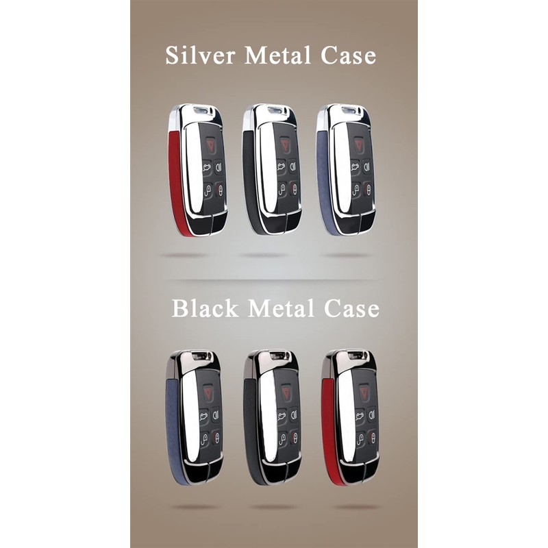 SANRILY Keyless Key Cover for Land Rover LR4 for Jaguar XF Metal Leather Key Protector Case Shell Fit for Range Rover Discovery Sport Black