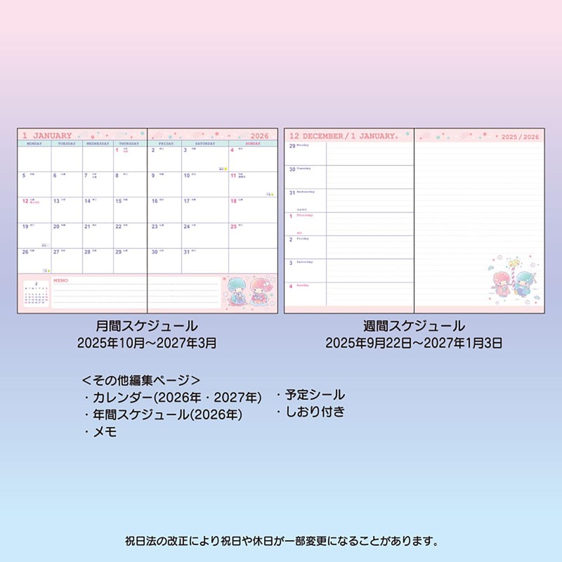 Sanrio 623261 B6 Diary (Ruled Type) 2026 Little Twin Stars Kiki Lara Paper Beginning of October Planner Schedule Notebook Diary Schedule Book