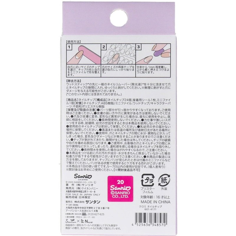 Sanrio Character Nail Tip, Chromi, Peel and Stick, 3D, 24 Pieces, Short, Gradient Stone, Nail Seal, Stylish, Popular for Girls, Removable,
