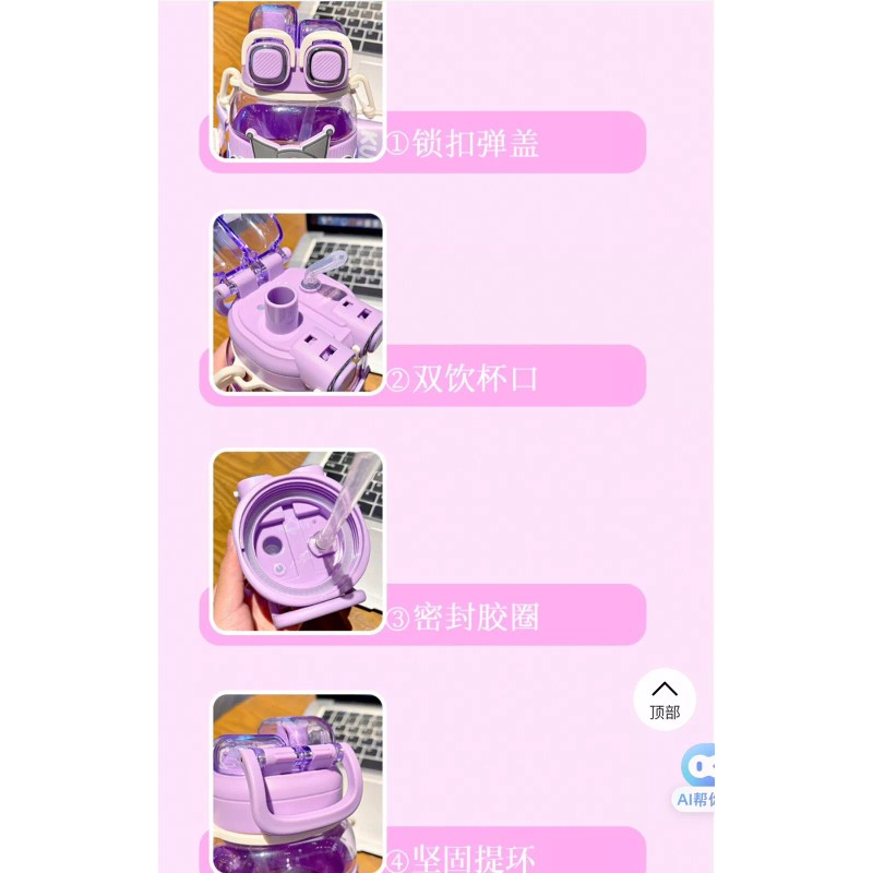 Sanrio My Melody Two Straws Drinking Water Bottle 760ml Capacity / Strap NEW