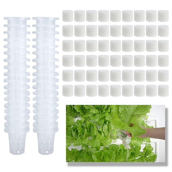 SanSanYa 36pcs Hydroponic Net Pots with 54pcs Hydroponic Planting Sponges Plastic Slotted Mesh Net Cup Pots for Hydroponic System (2")