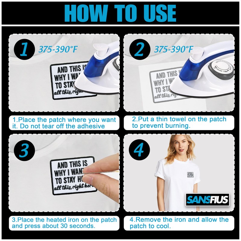 - Exquisite Patches: SANSFIUS's embroidered patches, hat patches, patches for clothes are crafted with premium embroidered cotton fabric. These trucker hat patches, backpack patches for girls, jean jacket patches feature a high-quality hot melt adhesive on the reverse side, enabling easy application through ironing or sewing. The technical construction of the patches, including the tight, knit stitching, ensures a durable and long-lasting hold.