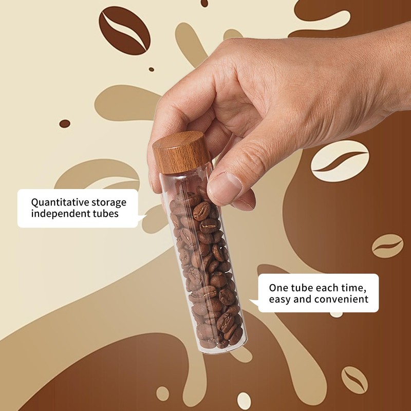 - 【Convenient to Use】The valves cover design eliminates the need to open the bottles to release CO₂ periodically. This coffee bean storage set has 6 tubes, each of which can hold 16-22 grams of coffee beans. More simple to transport and use, you can prepare the beans ahead of time every day for the next use, which is ideal for streamlining your morning routine.