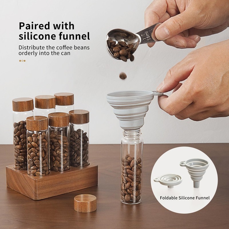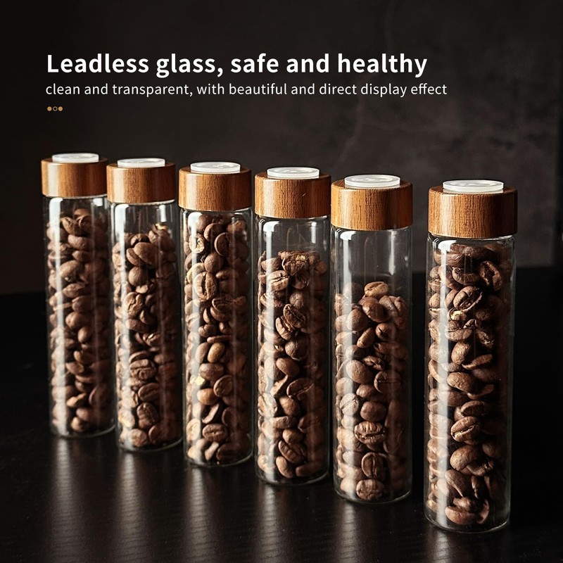 - 【Wide Application】Our single dose glass bottles with valve are suitable for storing coffee, chocolates, nuts, beans, tea, spices, and other tiny items. Sealed tubes can be utilized to improve storage and keep your countertop organized. It comes with a mini-hopper for convenient refilling. It can be used both at home and when camping. A fantastic pick for coffee aficionados, whether you are a professional barista or a die-hard coffee fan.
