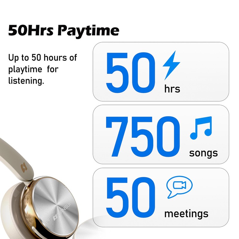 - [ Superior Battery Life ] The headphones with exceptional battery life, allow you to enjoy 35 hours of playback in Active Noise Cancelling (ANC) mode and up to 50 hours of continuous music playback in standard mode, making them a great device for traveling. Work or diving into the world of music without worrying about recharging it frequently.