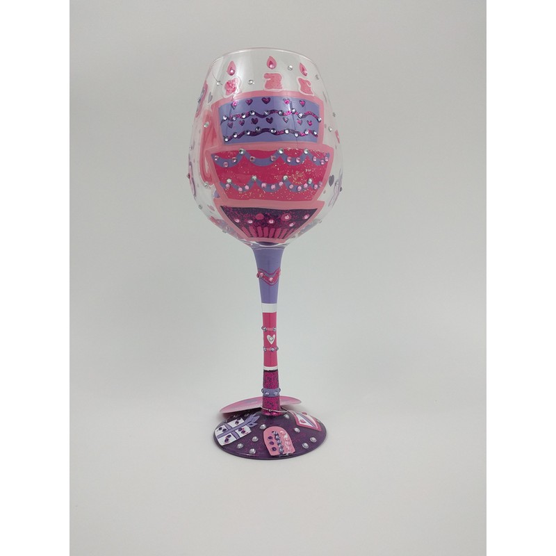 - Themed super bling wine glass from Lolita is hand painted and bedazzled with hundreds of rhinestones