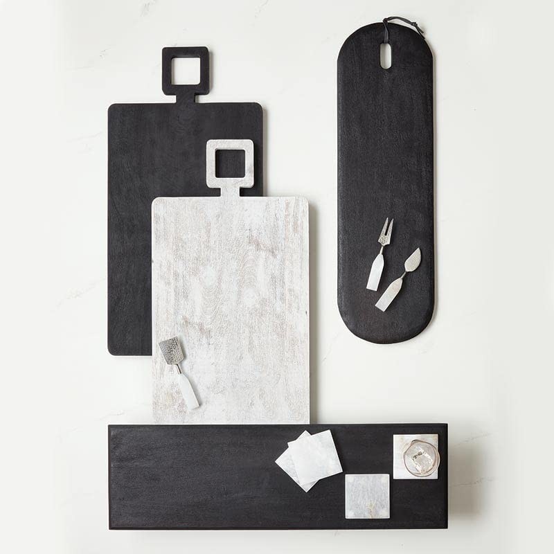 • CUTTING BOARD: Beautifully crafted serving tray; paddle-shaped board has a brushed black wash finish will add style to any gathering