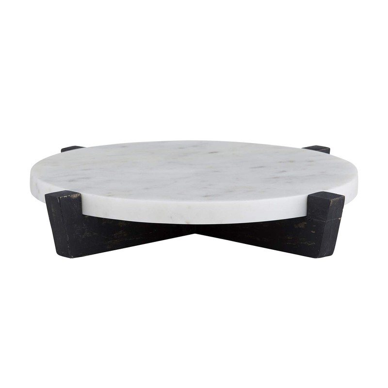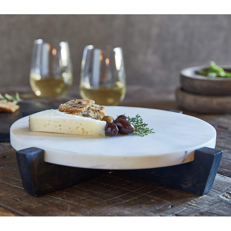 - 2-PIECE SET: Natural mango wood stand is removeable for easy cleaning; beautiful marble tray can be used on its own