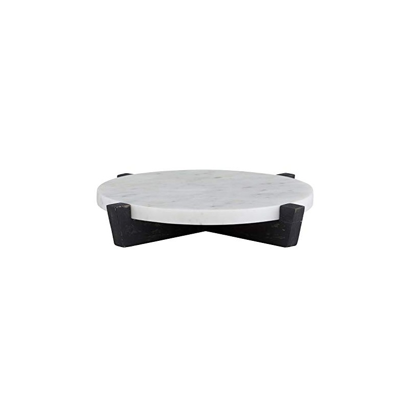 Santa Barbara Design Studio Table Sugar Round Marble Tray with Mango Wood Stand, 11-Inches, Charcoal