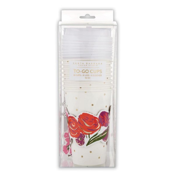 Santa Barbara Design Studios 8-Count Disposable Paper Coffee, Sleeves and Lids to-Go Hot Drink Cups, 16-Ounce, Moroccan Flower