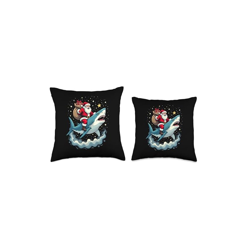 Santa Claus Riding Shark Men Boys Funny Christmas Shark Throw Pillow