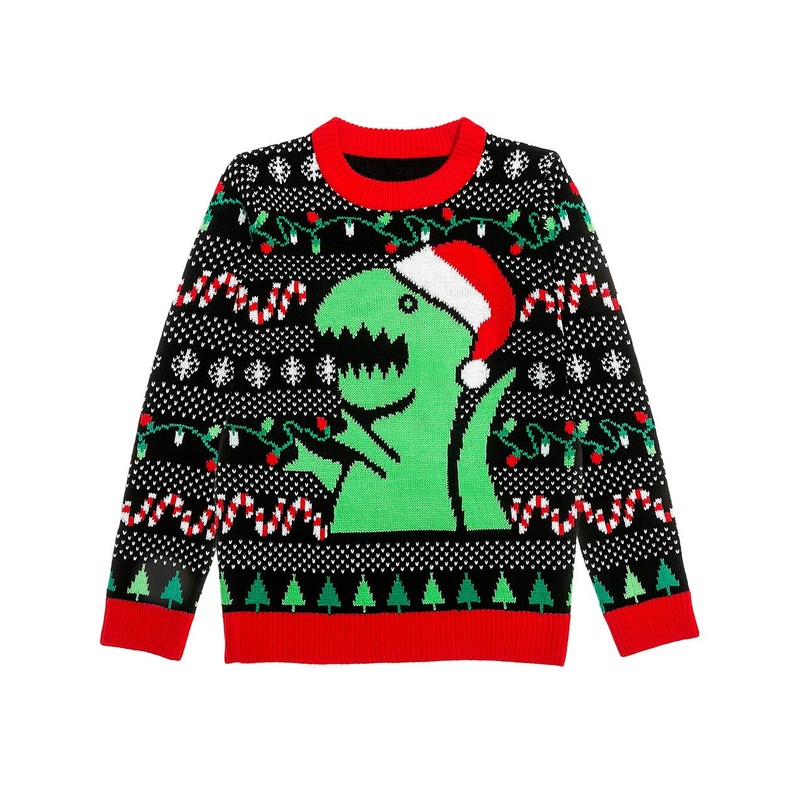 - Santa dinosaur trex ugly Christmas sweaters for toddler and youth kids; Show off some holiday vibes with a dino themed sweater that's sure to be a hit at any holiday party