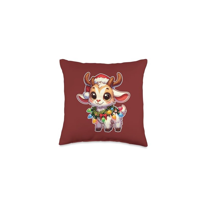 Santa Hat Christmas Fairy Lights Goat Throw Pillow