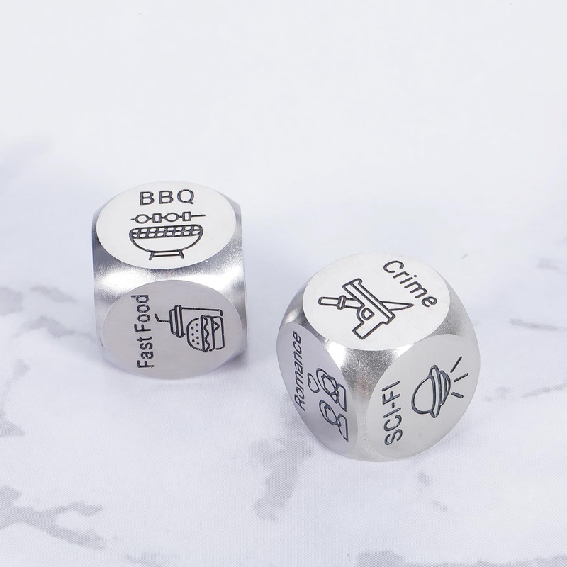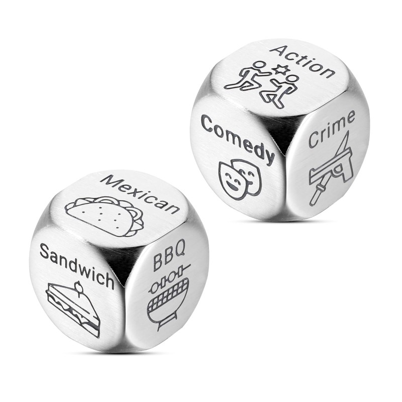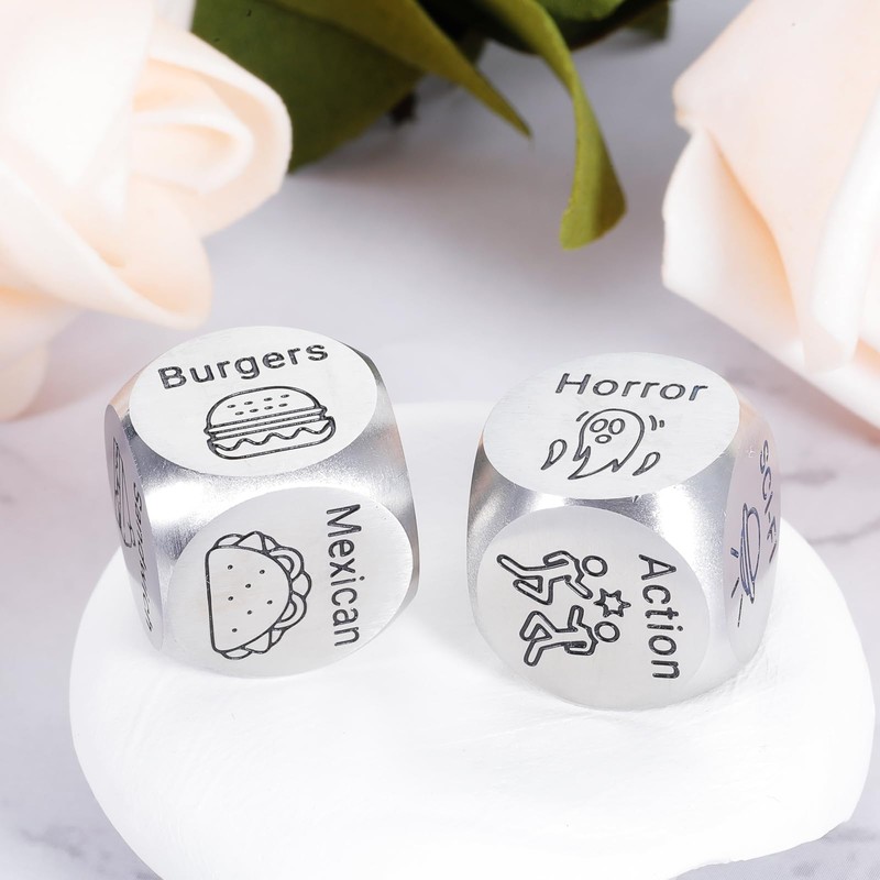 - ❤Valentines Gifts for Him Her❤Have you ever struggled with what to have for dinner or what movie to watch on a date? This set of dice provides you with 6 foods and 6 types of movies to choose from. Funny gifts for couple, girlfriend, boyfriend, husband, wife, lover. Date night ideas, date night dice, date night gifts for couple, anniversary gift ideas, boyfriend birthday gift ideas, husband birthday gift ideas, date night gifts for friends, valentines gifts for him her.