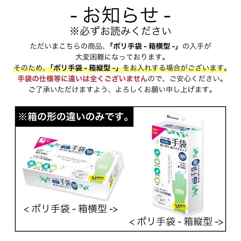 ■Caution: This product is polyethylene gloves, so it may tear if too much force is applied.