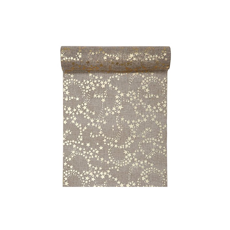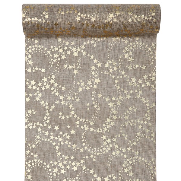 Santex 3 Meter Jute Tischläufer Weihnachten Sterne in HellbraunGold 30 cm [Breite]