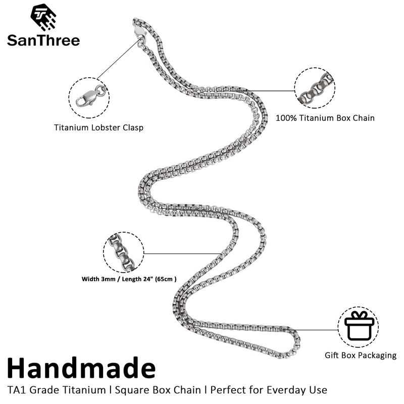 SanThree Pure Titanium Necklace for Men 3mm Square Rolo Chain, Durable Skin Friendly Solid Titanium Round Link Box Chain for Women Gift, 21.65 Inches