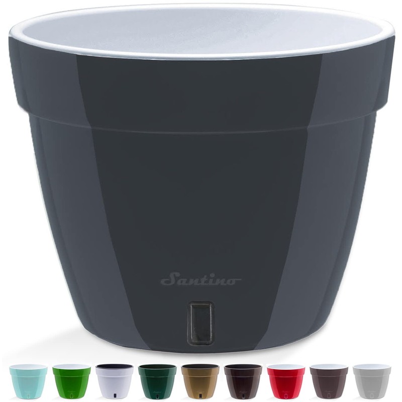 Santino ASTI 30 cm Self-Watering Flower Pot with Water Level Indicator for Plants, Flowers, Herbs (Diameter 30 cm, Height 23 cm, 12 Litres, Anthracite/White)