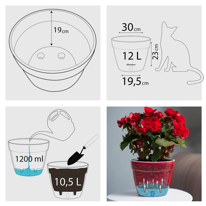 - Self-watering: The self-watering system is perfect for indoor plants. Simply pour once or twice a week and enjoy the green permanently. Practical: the planter has no drainage holes, is therefore guaranteed waterproof and can also be placed on wooden surfaces.