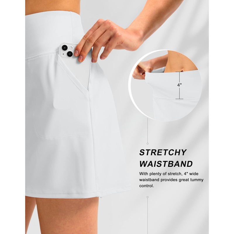SANTINY 16" Golf Skorts Skirts for Women with 4 Pockets Women's High Waisted Stretchy Tennis Skirt Athletic Skort, A White, L
