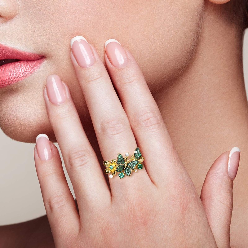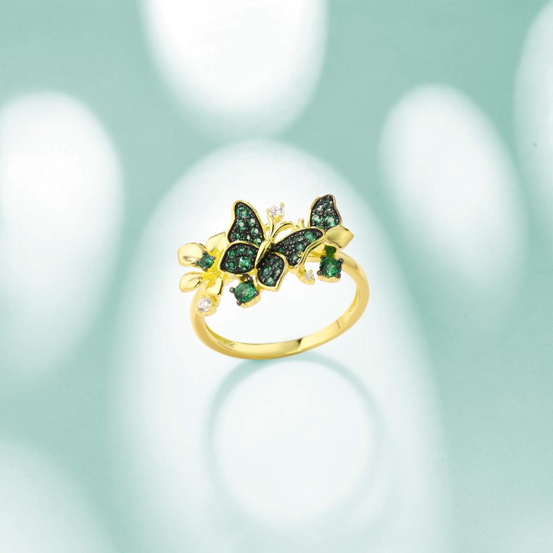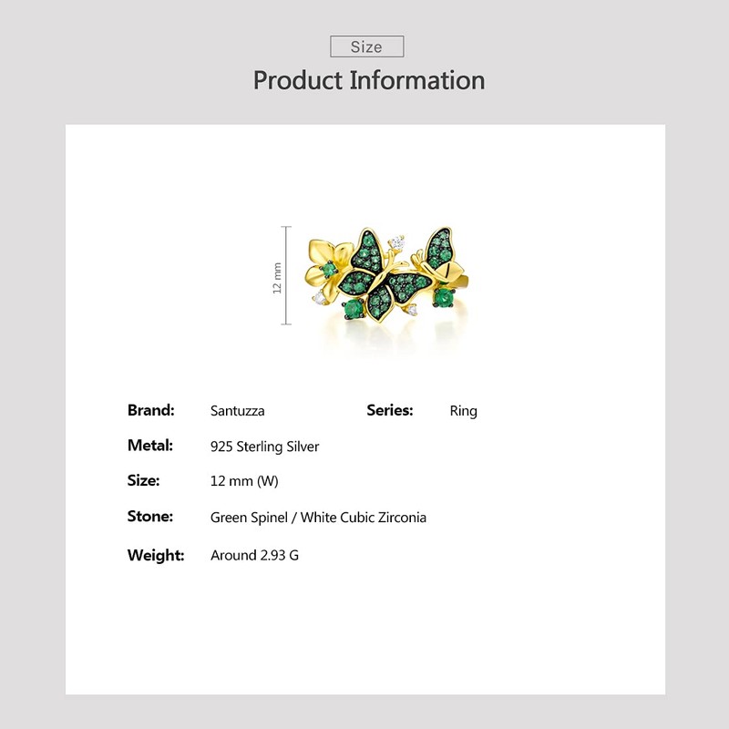 Santuzza 925 Sterling Silver Butterfly Ring Green Gemstone Cubic Zirconia Gold Color Ring for Women (7)