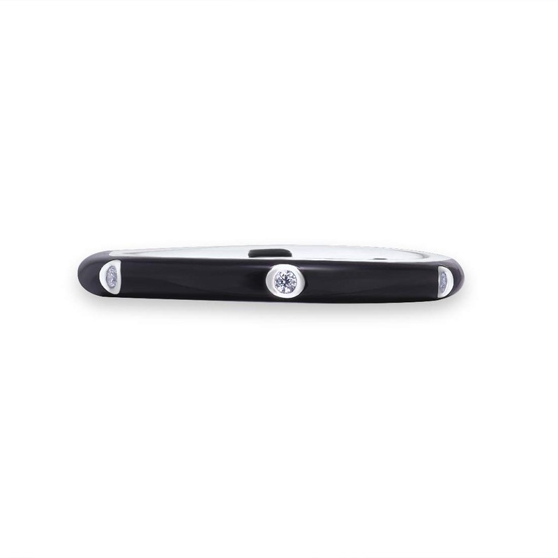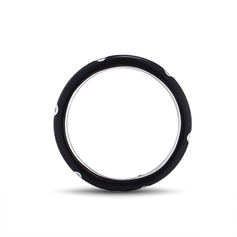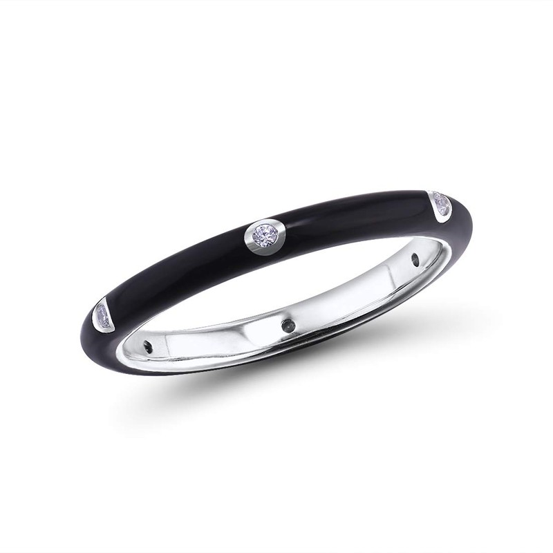 Santuzza 925 Sterling Silver Enamel Stackable Ring Cubic Zirconia Eternity Stacking Ring for Women (Black,7)