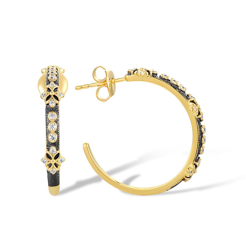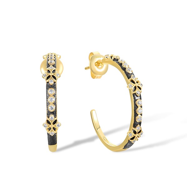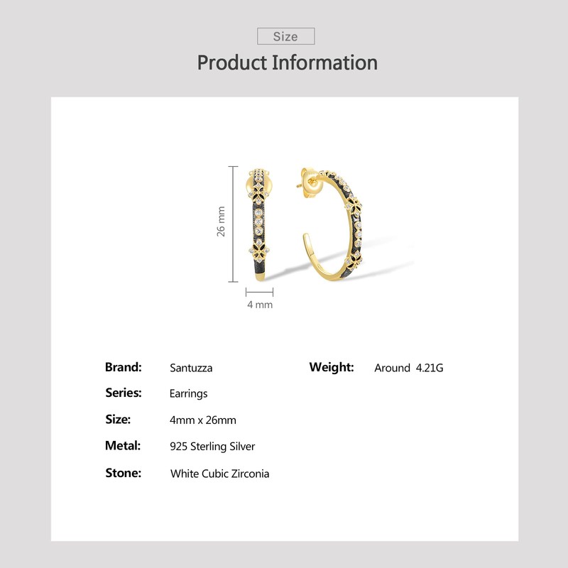 Santuzza 925 Sterling Silver Flower Pattern Earrings White Cubic Zirconia Half Moon Shape Stud for Women