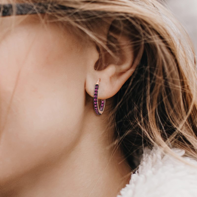 Santuzza 925 Sterling Silver Huggie Hoop Earrings 0.86 CT Created Ruby Cuff Pierced Earring (Rose Gold Plated)