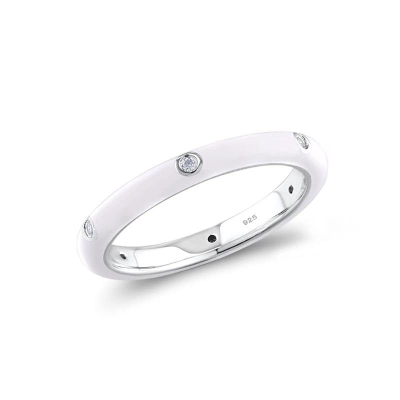 Santuzza Stackable Enamel Ring 925 Sterling Silver Stacking Cubic Zirconia Eternity Colorful Rainbow Band Rings (Small, White, 7.5)