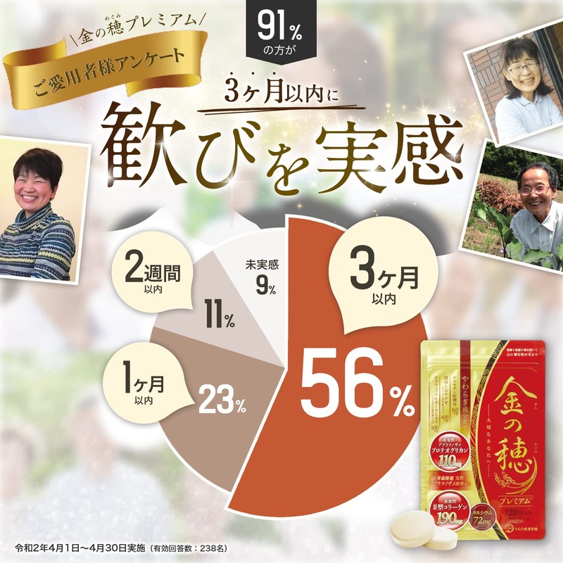 - 【プロテオグリカン含有量No.1 】金の穂 プレミアムには、8粒中プロテオグリカンが110mg(110000ug)以上含有されていることが証明されています。また、金の穂シリーズはプロテオグリカン含有量が国内製品中最も多く、最も安くお得な商品であることが報告されています。※プロテオグリカン含有サプリメント(健康食品)において製品1日目安最大量においてプロテオグリカン含有量とプロテオグリカン1ℊ当たりの価格調査。令和2年5/1~30日、(株)エスポワール アクア調査