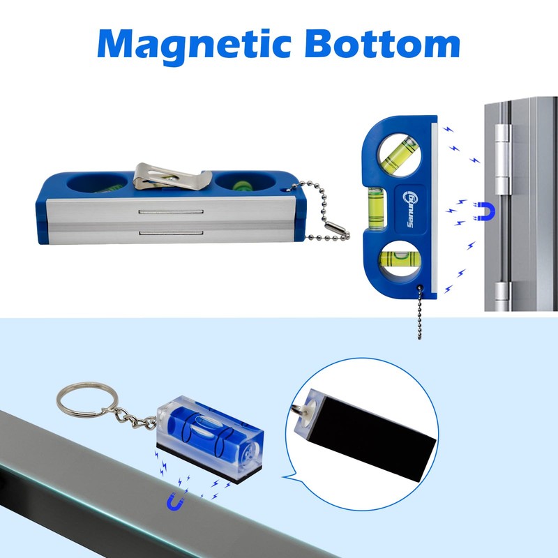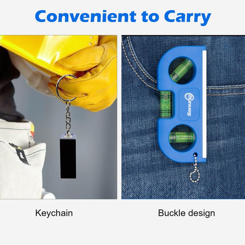 - Exquisite Acrylic Level: We have equipped two compact and special acrylic levels with fine workmanship for accurate leveling. The keychain design allows you to hang it on your toolbox or bag to prevent loss when you don’t need to use, and easy to access at anytime.