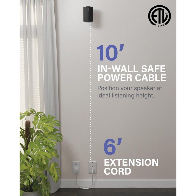 - Easily wall mount speakers and conceal power cords with this DIY kit—no electrician required! Includes a 10 ft ETL Certified cable to keep your home safe and your speakers powered.