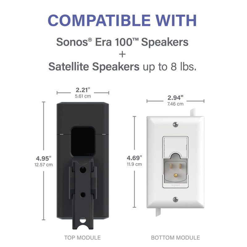 - Universal wall mount speaker bracket works with Sonos Era 100 speakers or other satellite speakers up to 8lbs from top brands like Bose, Klipsch and more.