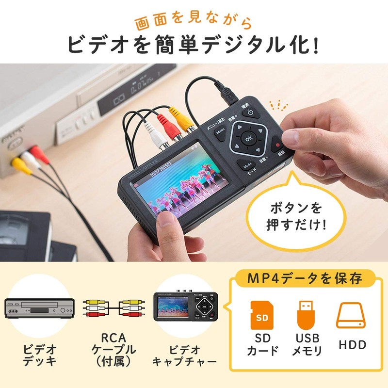 Sanwa Direct 400-MEDI029 Video Capture Digital Storage, No PC Required, USB/SD/HDD, Storage, HDMI TV Output, Built-in Monitor