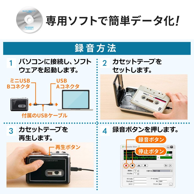 Sanwa Direct Cassette Tape MP3 Conversion Player Cassette Tape to Digital Converter 400-MEDI002